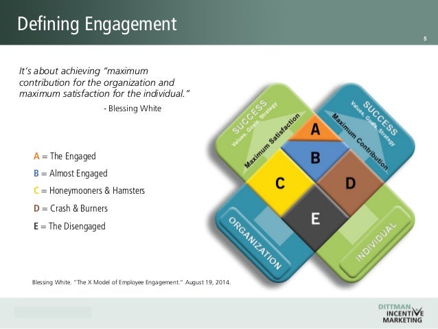 · Employee engagement lies at intersection of maximum contribution for the business and maximum satisfaction for employees It's a sustainable level of high performance that benefits both the company and the employee Okay, it's two sentences But it works Kudos to BlessingWhite and this video titled, "The 'X' Model of EmployeeAccording to this model Employee Engagement is employees' willing ness and ability to cont ribute to organizatio nal success, especially their willingness to give continuous effort,THE 'X' MODEL OF EMPLOYEE ENGAGEMENT Maximum Satisfaction meets Maximum Contribution Male Speaker So, what exactly is Employee Engagement?